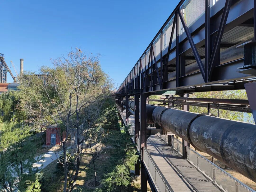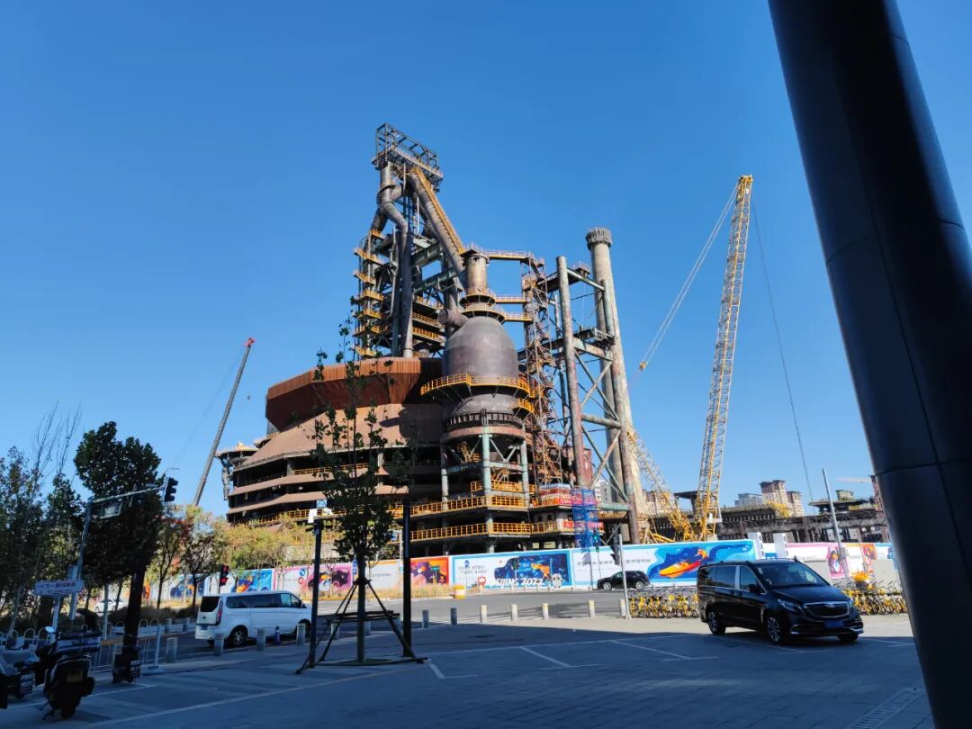 首钢园在大桥北面。这座运行了91年的老工业园区,为了改善空气污染问题,2010年彻底停产,搬往唐山曹妃甸。