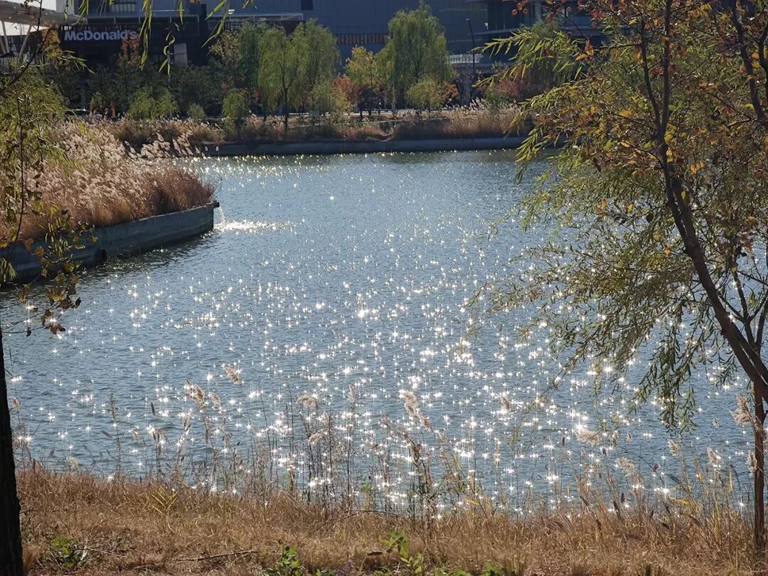 拉近镜头看看,好像湖面漂着一片珠宝。