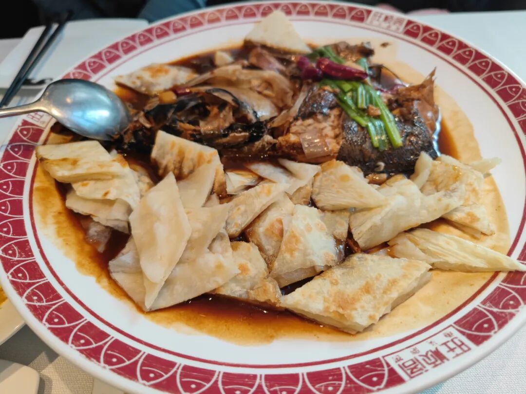 鱼头泡饼味道挺好,只不过现在店大了讲究了,还给介绍这个鱼头应该按什么顺序吃,先吃“划水”再吃什么,没记住。
