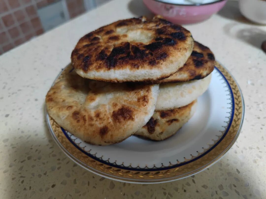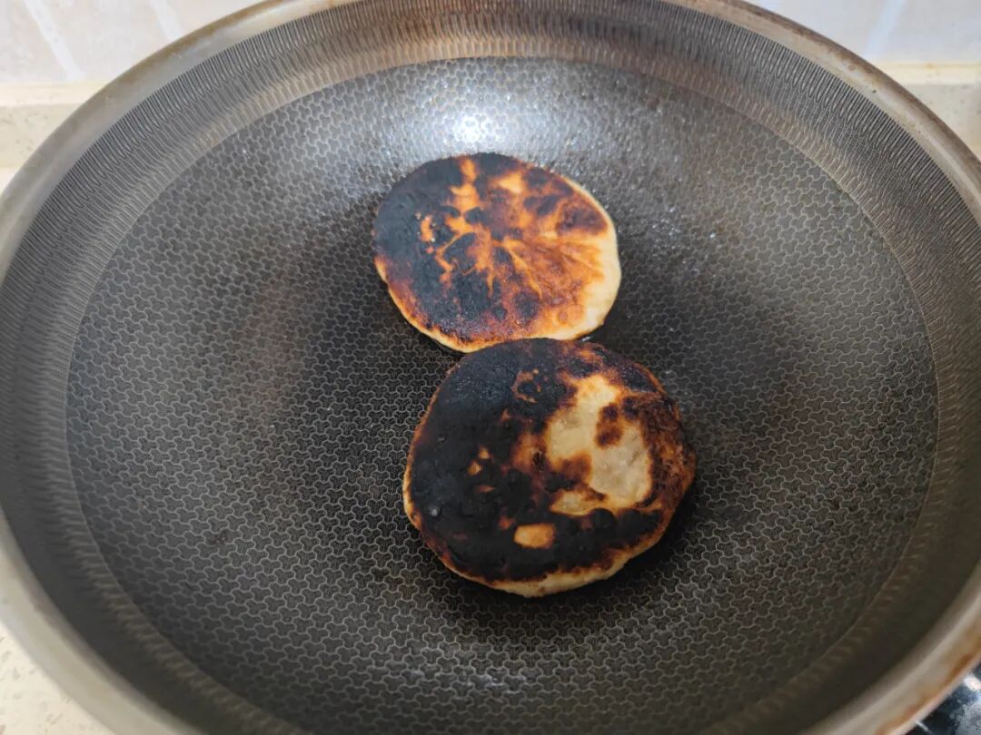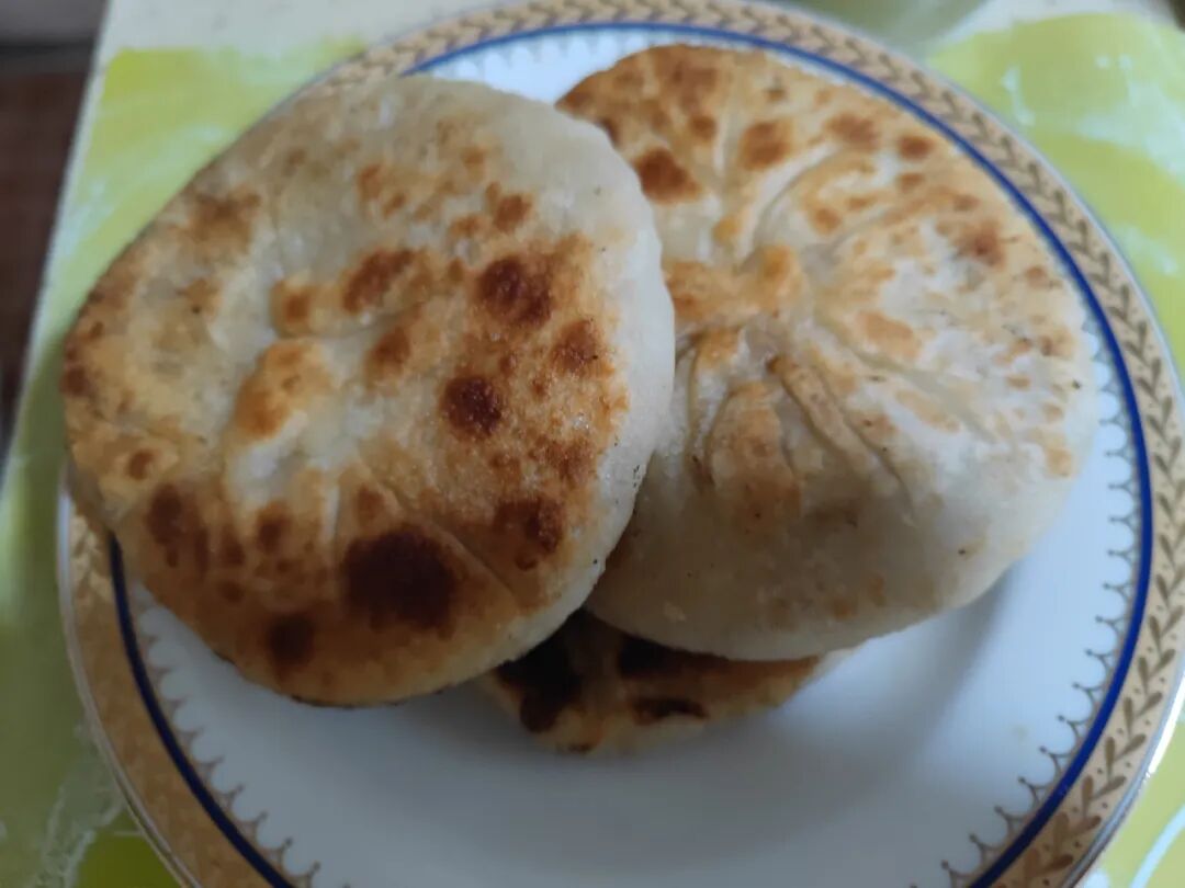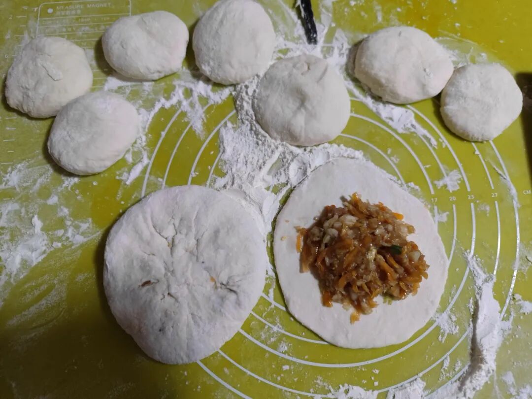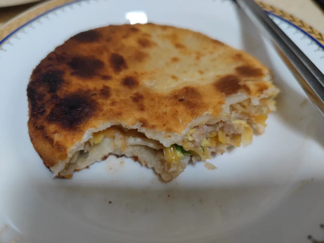 人生的第一个自己做的馅饼,馅儿挺好,就是这个面……过厚,一口下去噎。