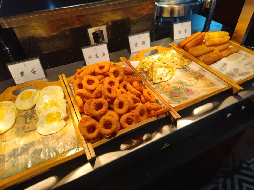 早上我起来,他睡得很香,出来玩就每天睡到自然醒,我没喊他,早餐时间快过了,我穿上衣服自己先去吃。