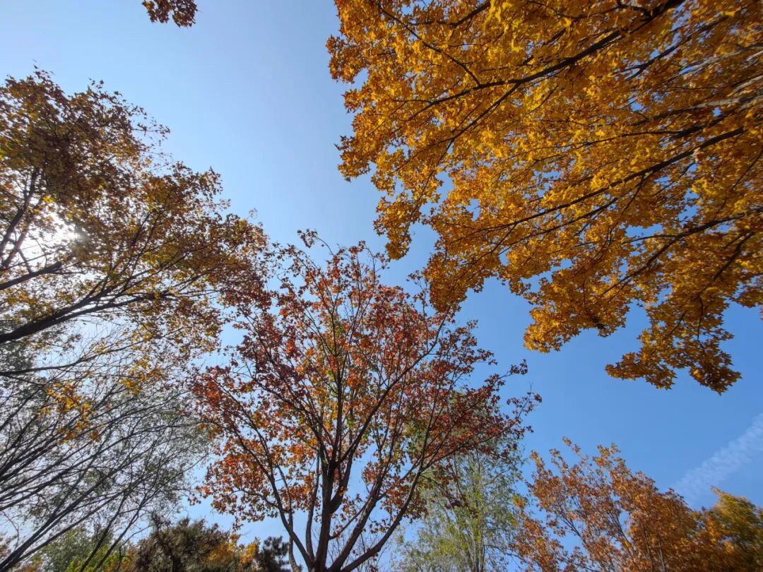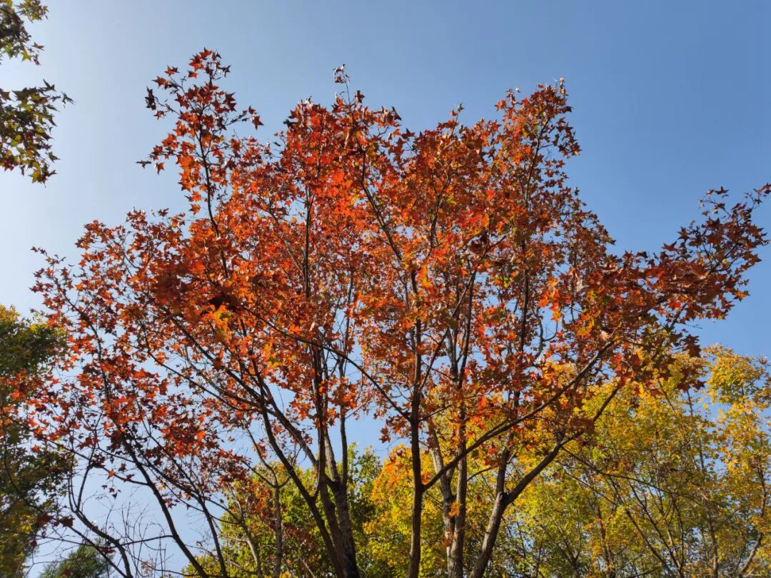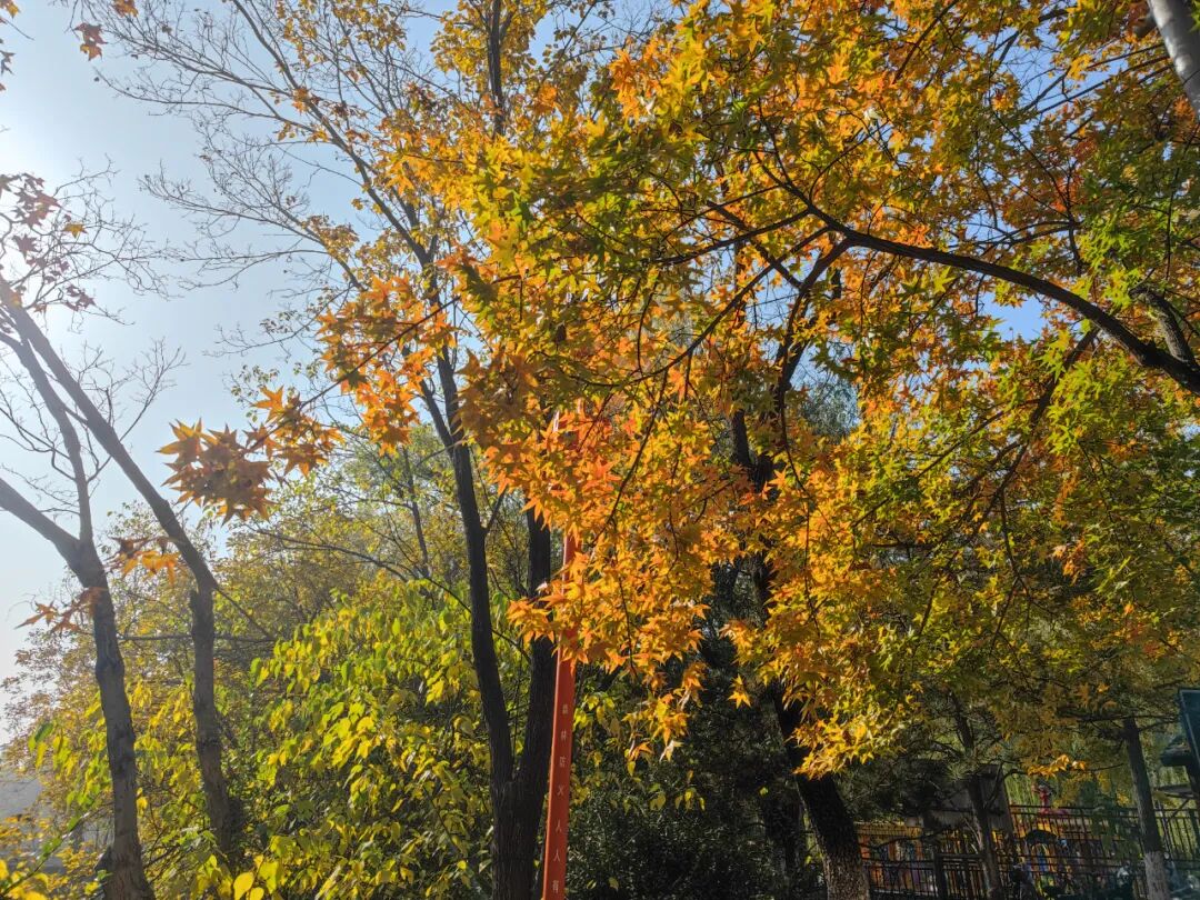满地落叶,我不太懂,为什么感觉是同一树种,都是枫叶,却有的叶子是红色、有的是黄色?