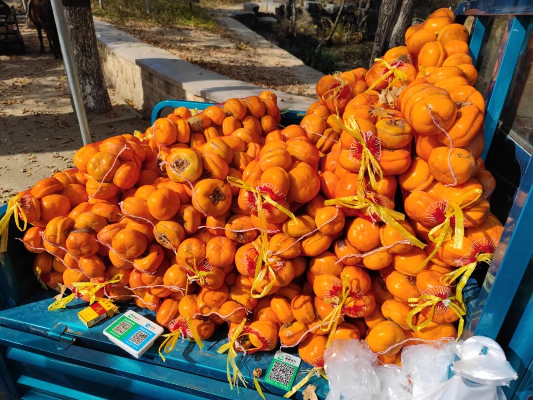 出了门,拉车卖柿子的,看起来不错呀,一袋子约10斤,1.5元一斤,15元一袋。