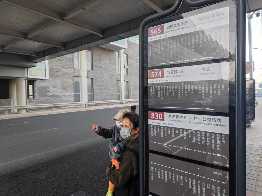 出了张郭庄站,坐公交574路,到大灰厂村。