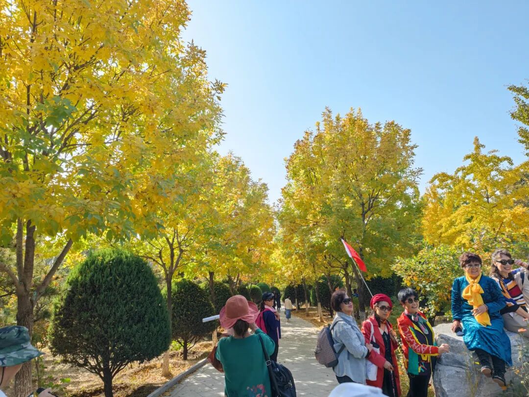 工作日出游,人确实少很多,但也会遇到退休阿姨团,她们人美也爱美,会和各种景色合影,特别会找角度、摆姿势,咔咔咔的照,单人的、集体的、两人三人四人等各种排列组合的,她们的手机内存一定不小。