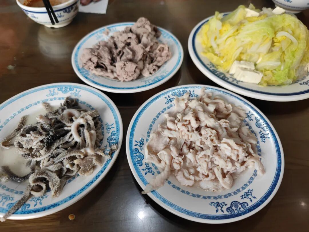 大哥爱吃肉、嫂子爱吃菜,我全爱吃。百叶、羊肉、白菜豆腐粉丝,蘸小料吃,再来个门钉,完美!