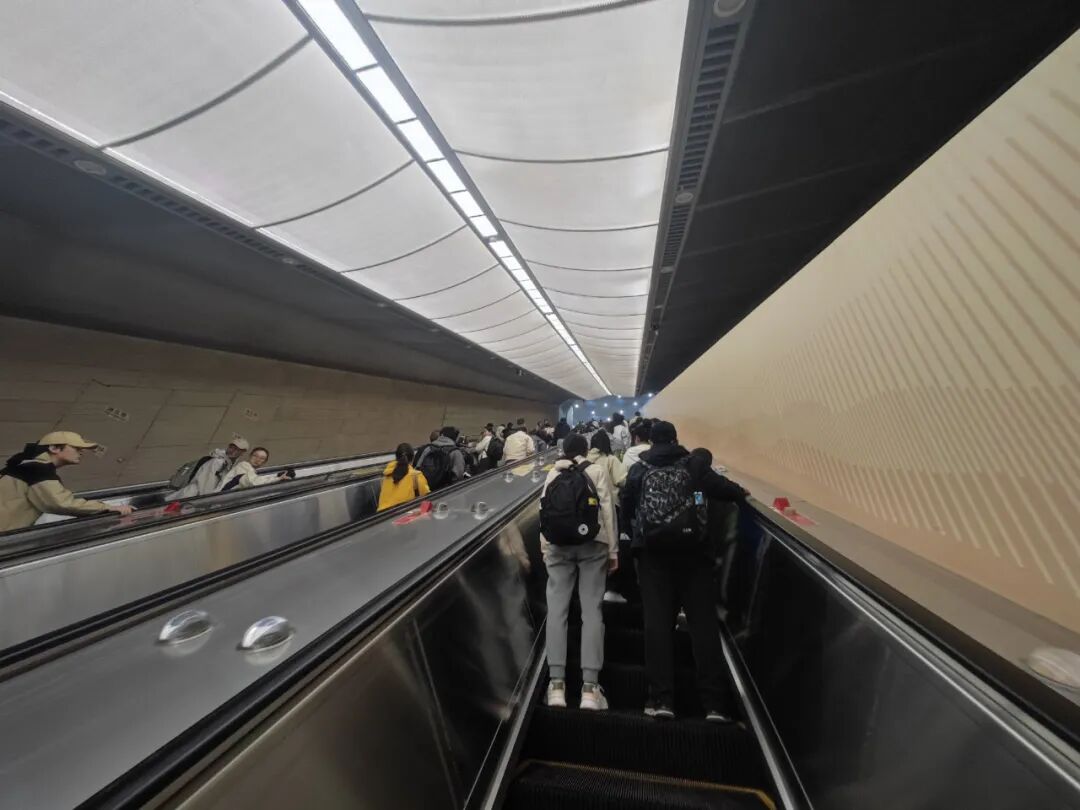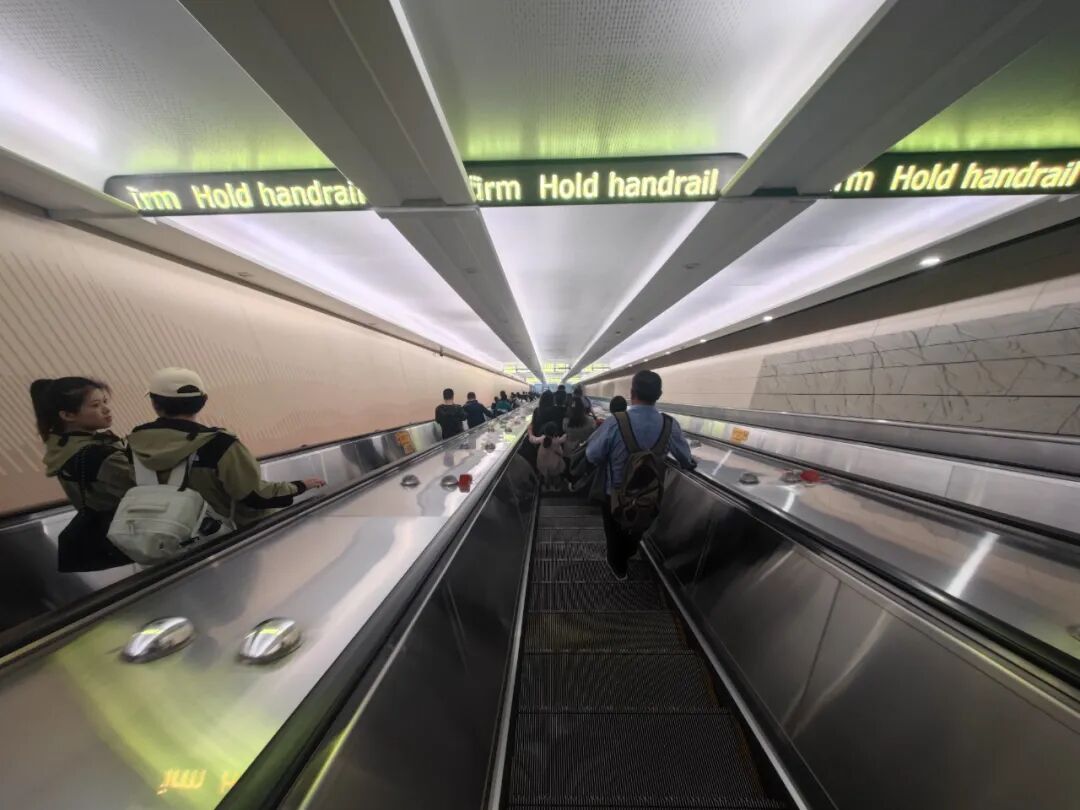 到了八达岭站,坐一趟80米长的滚梯出站。