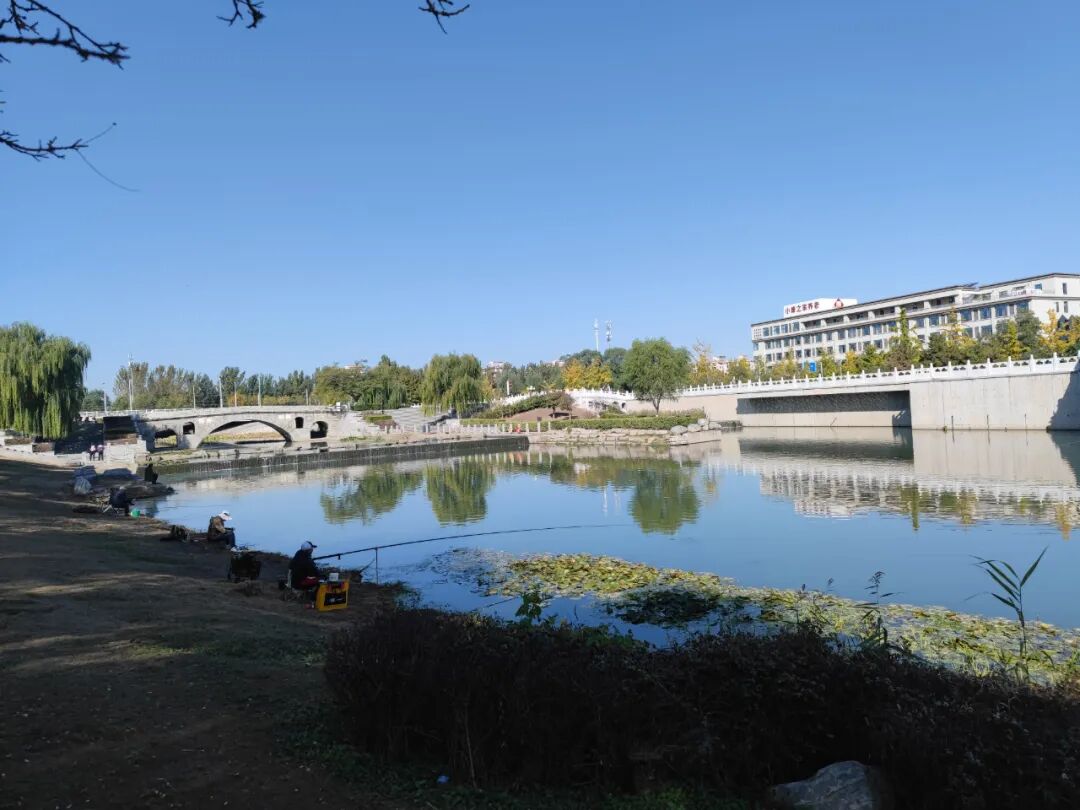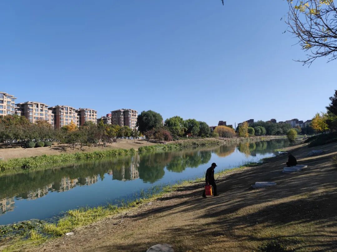 这边远处可以看到点小区,河边不少钓鱼的。