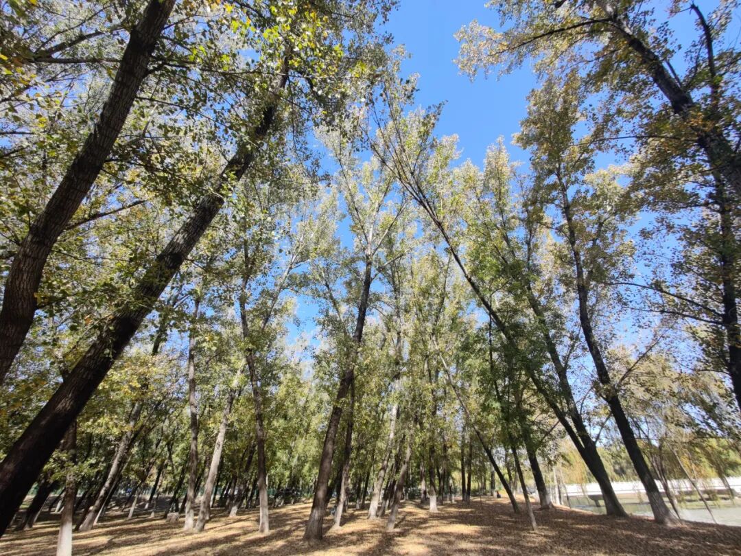 河边的树林,虽然是叶子只枯萎不变色的杨树,但很高大。