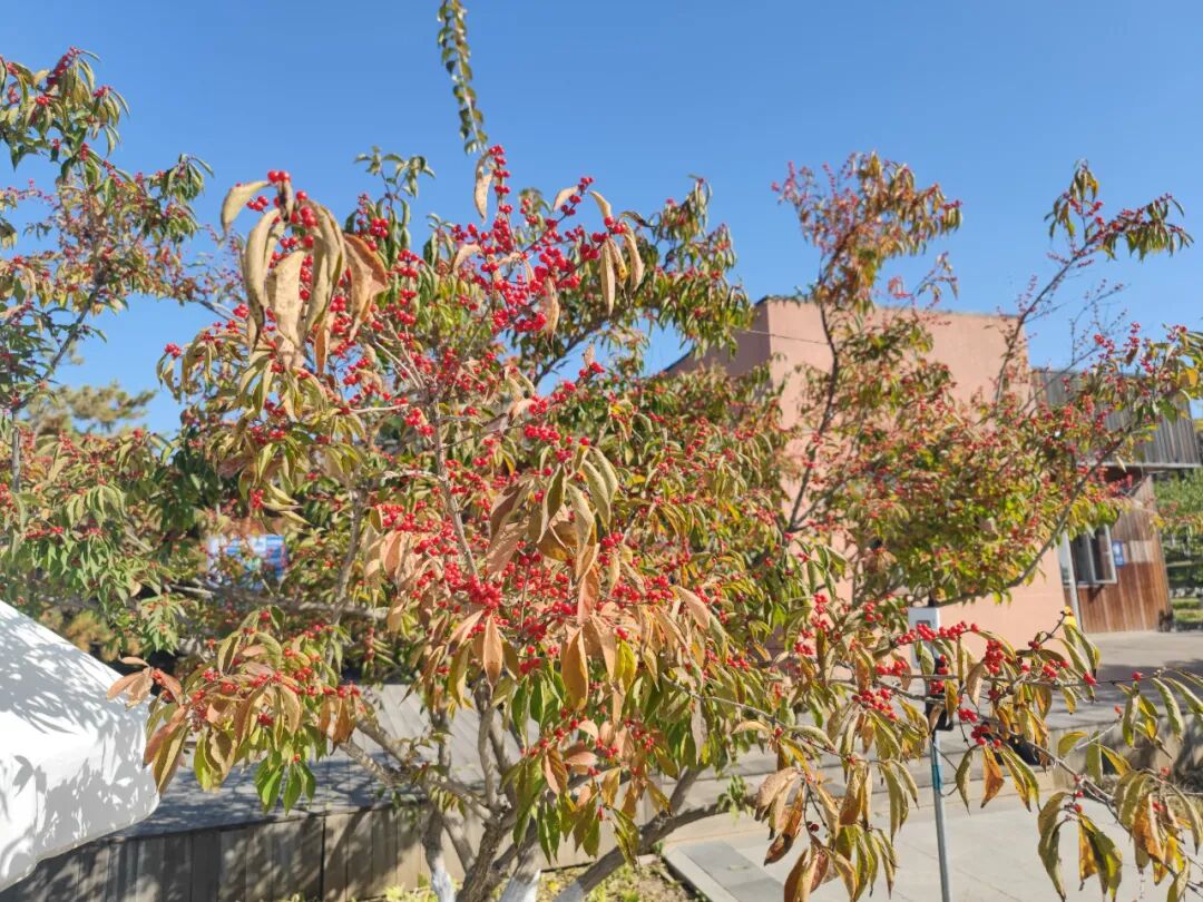 一株特别好看的金银木,除了红色的果实,叶子也变色了。