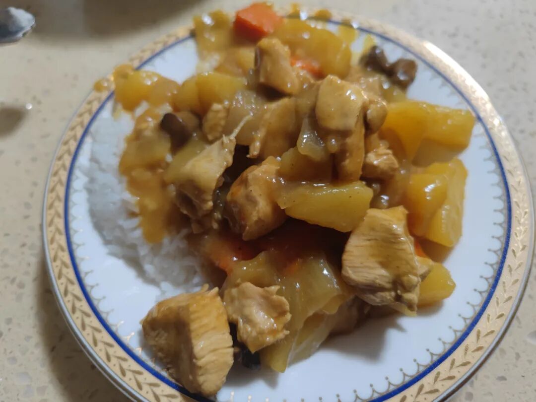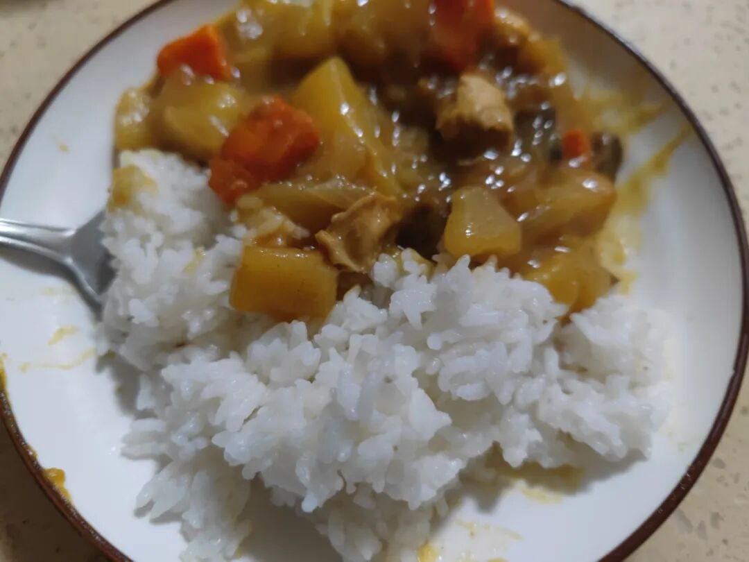 啊啊啊,太香了,居然吃到嘴里有回甘,米饭粒裹着咖喱汁,好吃极了。