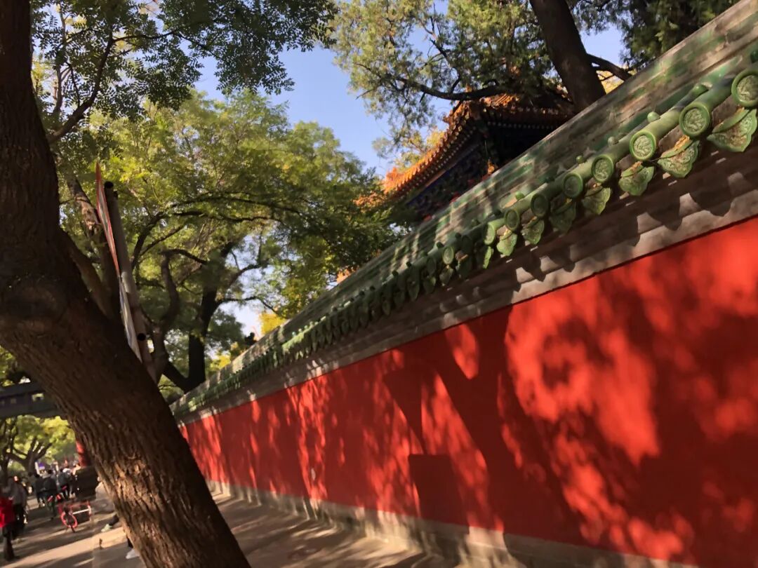 出了地坛,我往南溜达。过了北二环是雍和宫,雍和宫正门对面是国子监街,说是街其实也是条胡同,同样红墙绿瓦古色古香,右侧就是孔庙和国子监。