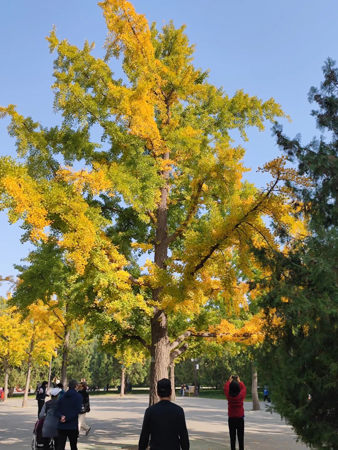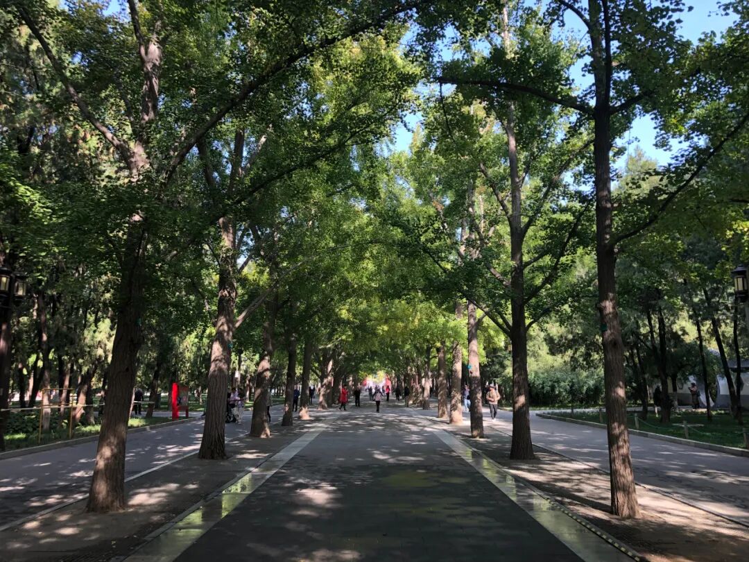 银杏甬道,两边都是银杏树,但还没变色,等过一两周,这条路一定特别好看。