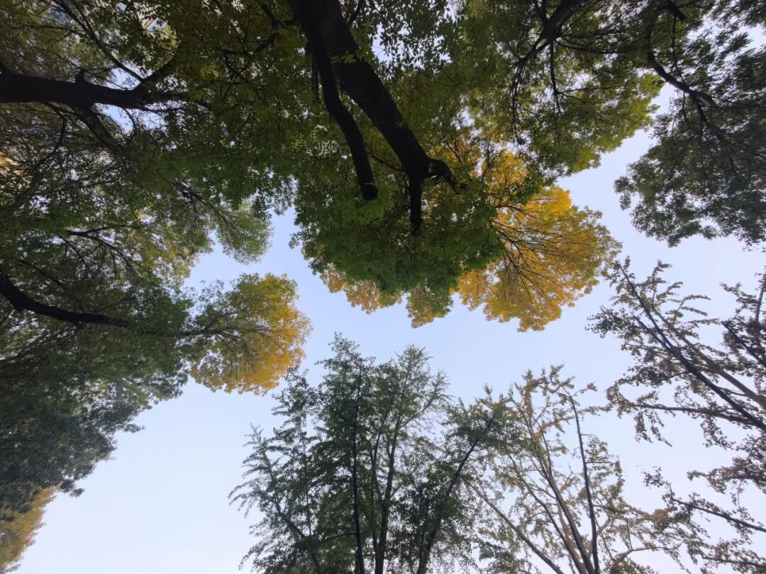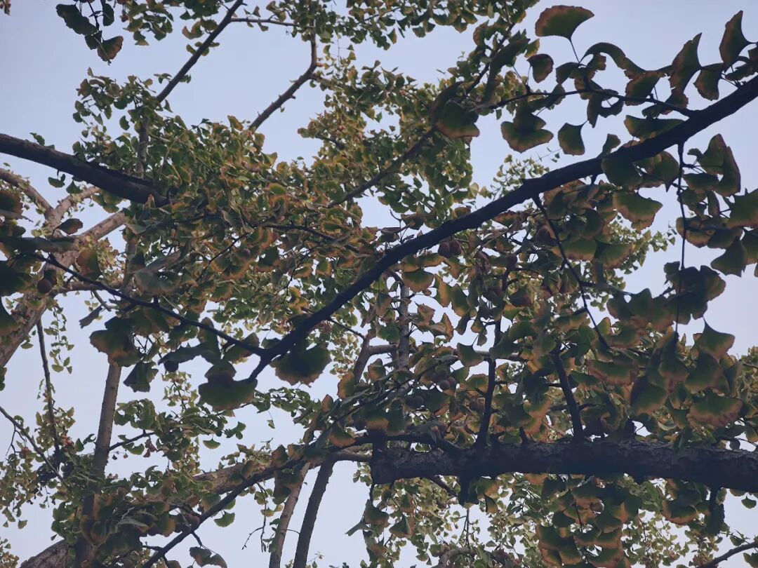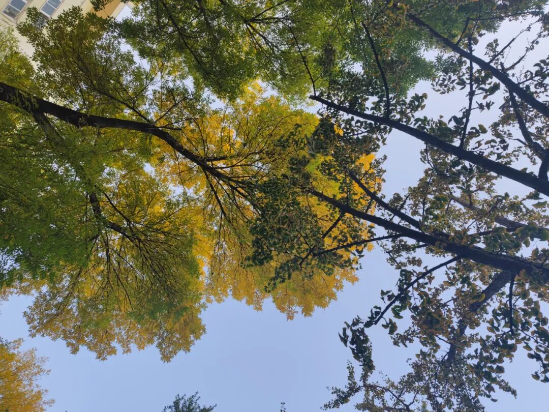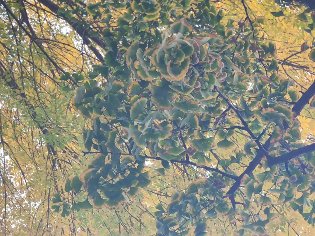西门的几棵银杏在变黄了。