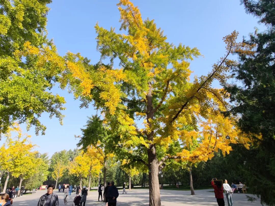 这棵银杏已经初见北京秋日的色彩。