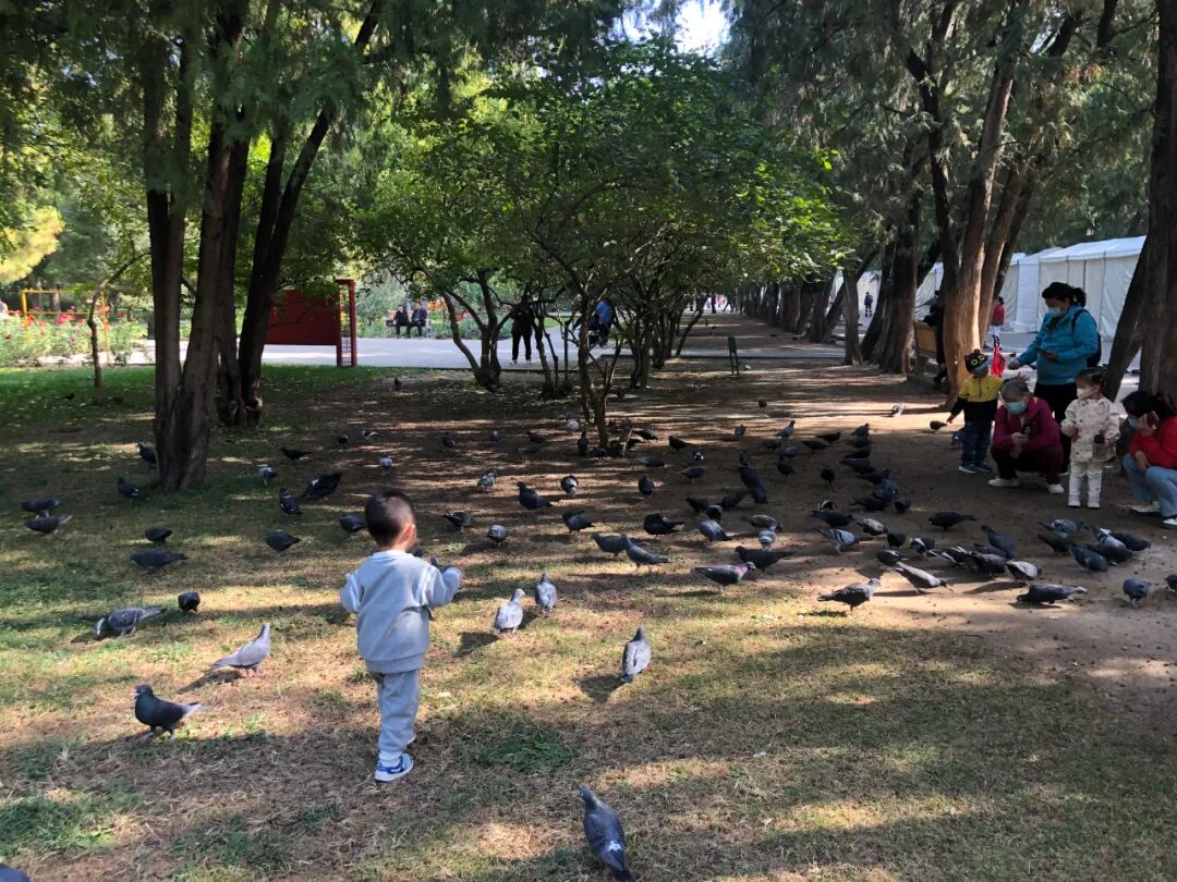八大处的小动物是猫,地坛就是鸽子,幼儿与鸽子似乎总是契合的搭配。