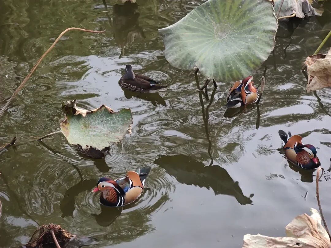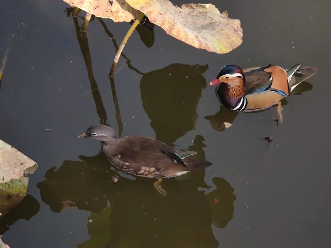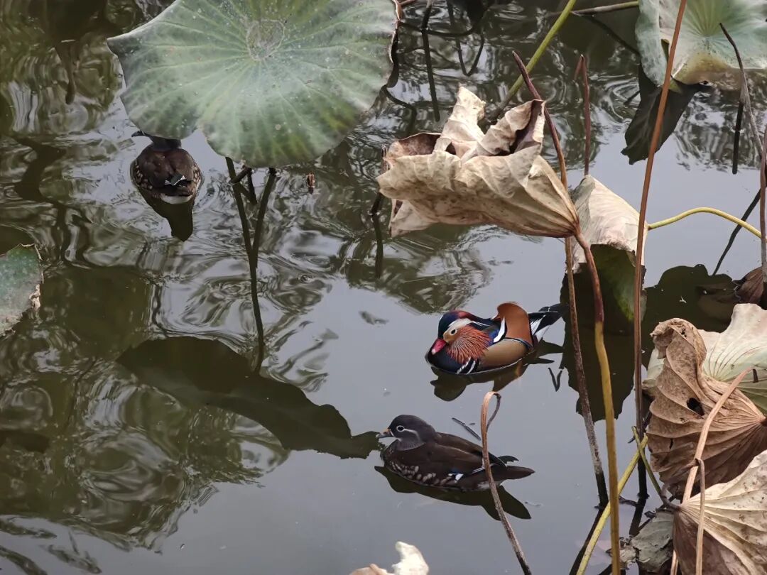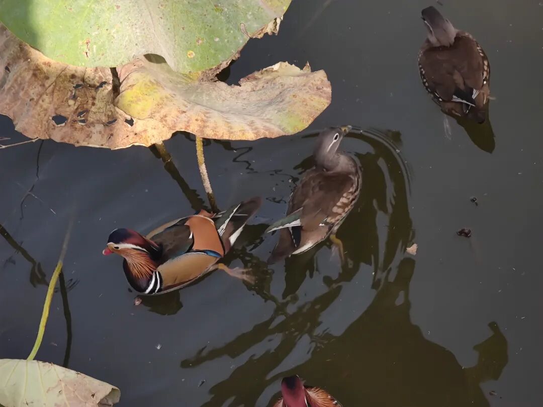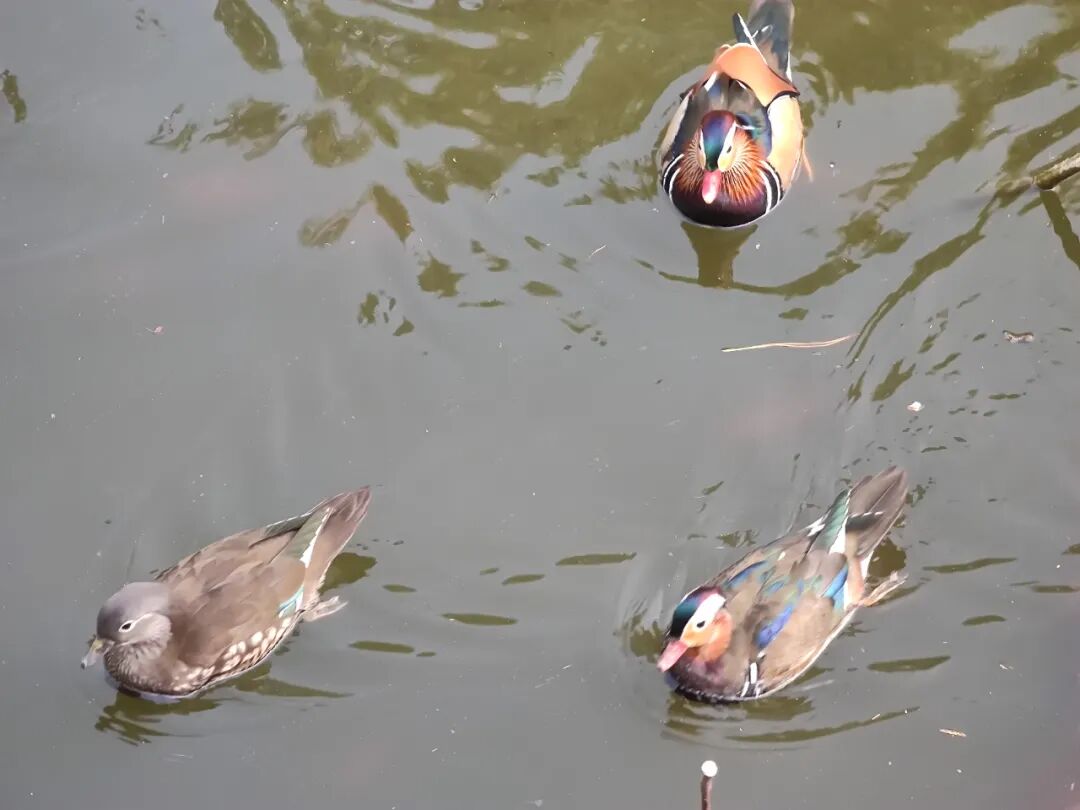 有三种外貌,上面最漂亮的是公的,下面左侧是母的,而右下这种我猜是还没长大成熟的小鸳鸯。