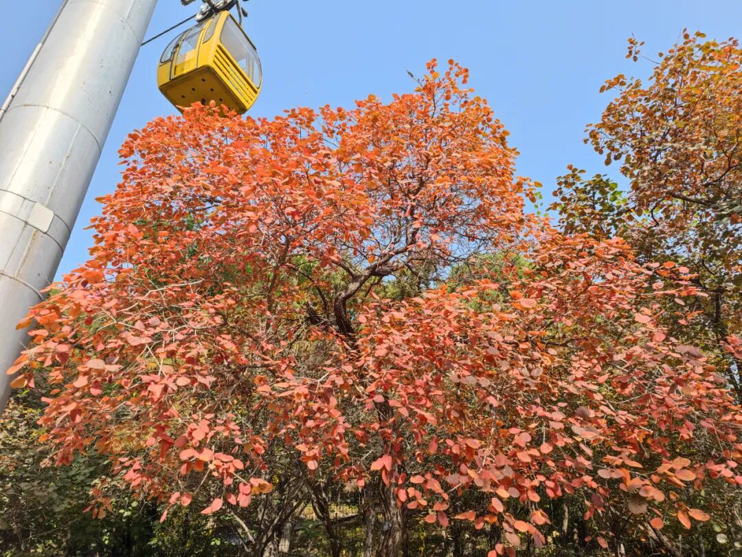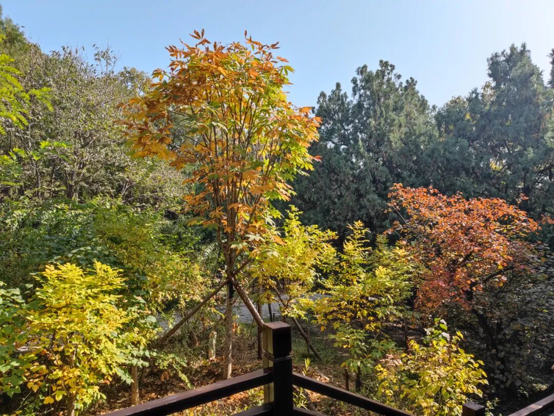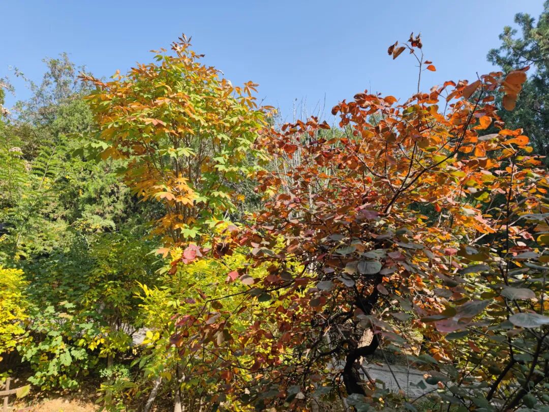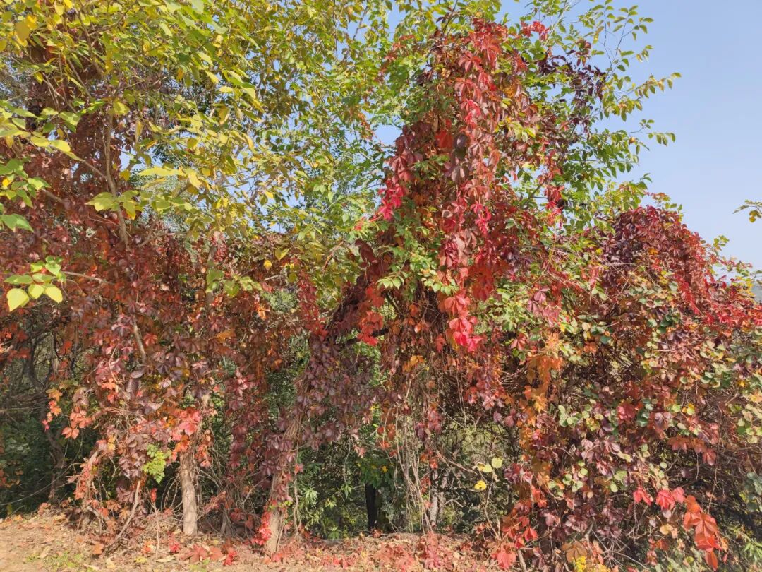 现在还不是叶子彻底变色的季节,网上那些漫山遍野红灿灿的照片,都是以前的。