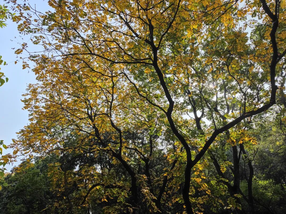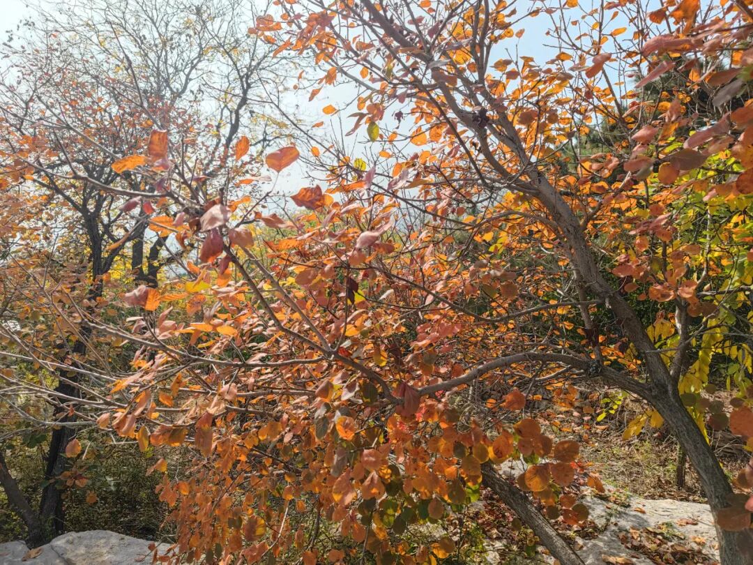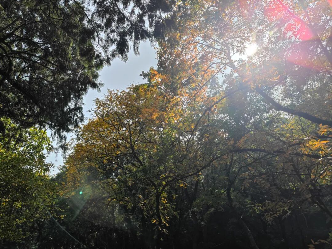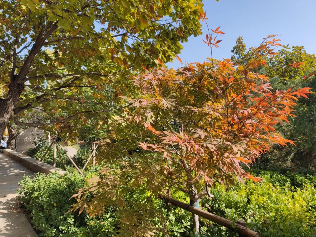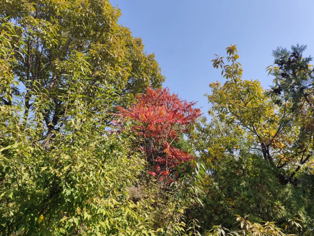 现在还不是叶子彻底变色的季节,网上那些漫山遍野红灿灿的照片,都是以前的。