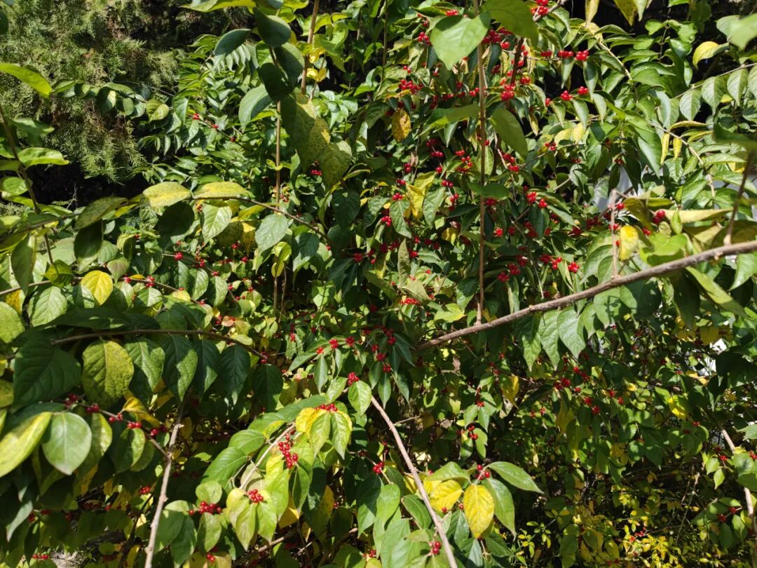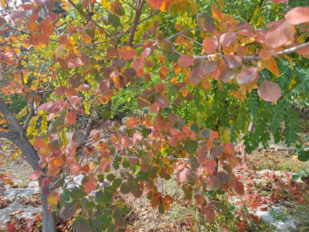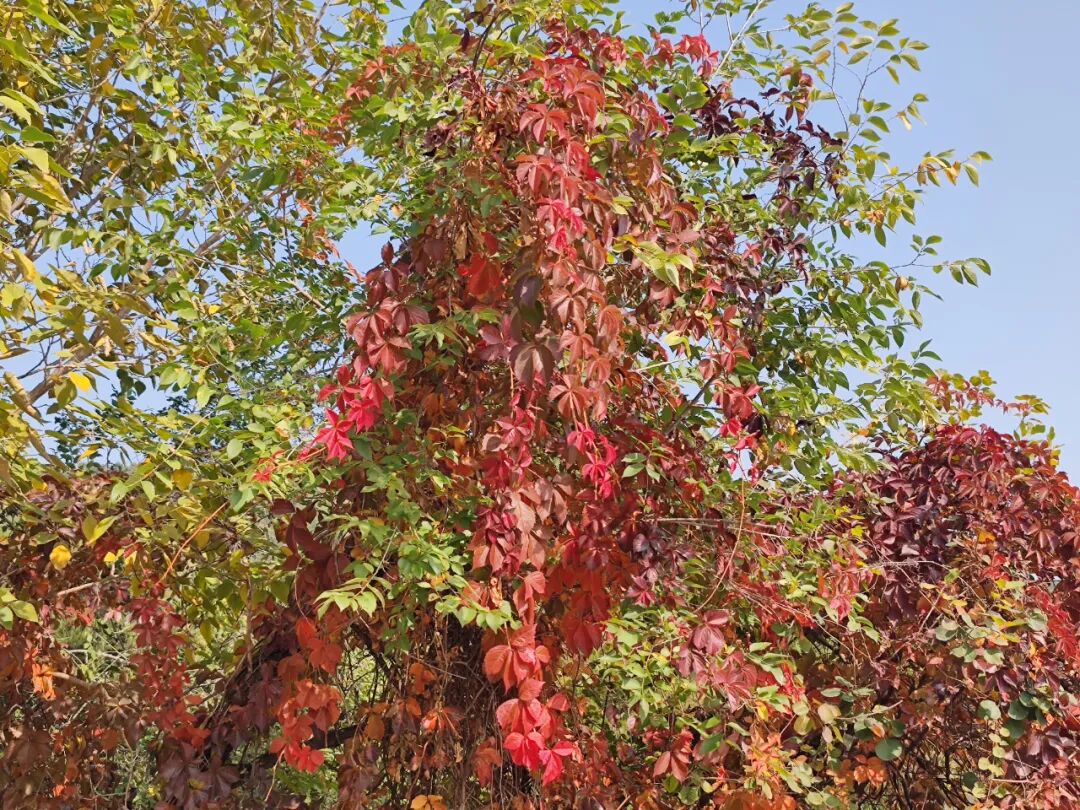 现在还是渐变色,少数的变红变黄了,大部分还是绿色。