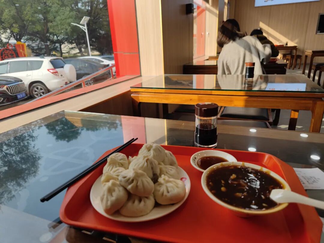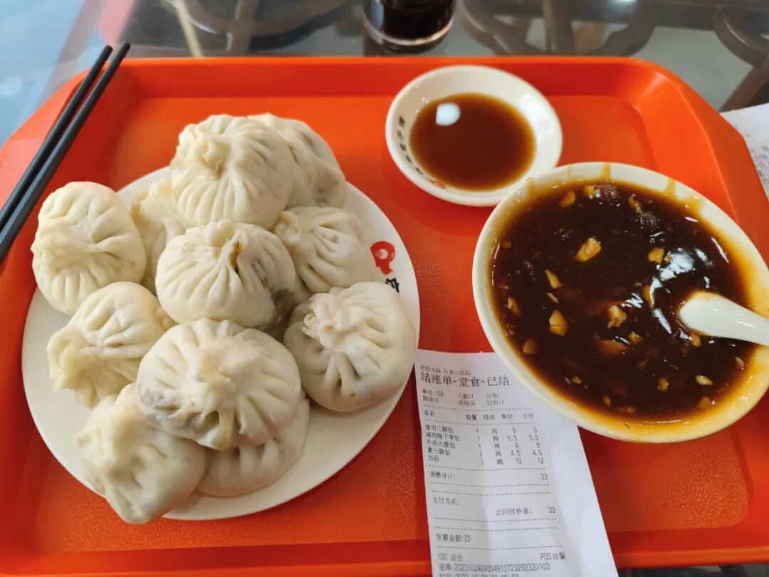 素三鲜、猪肉梅干菜、猪肉三鲜、牛肉大葱,一两3个,我要了4两,感觉是点多了,炒肝有点稀,味道比较淡,但配包子挺合适,33元,便宜。