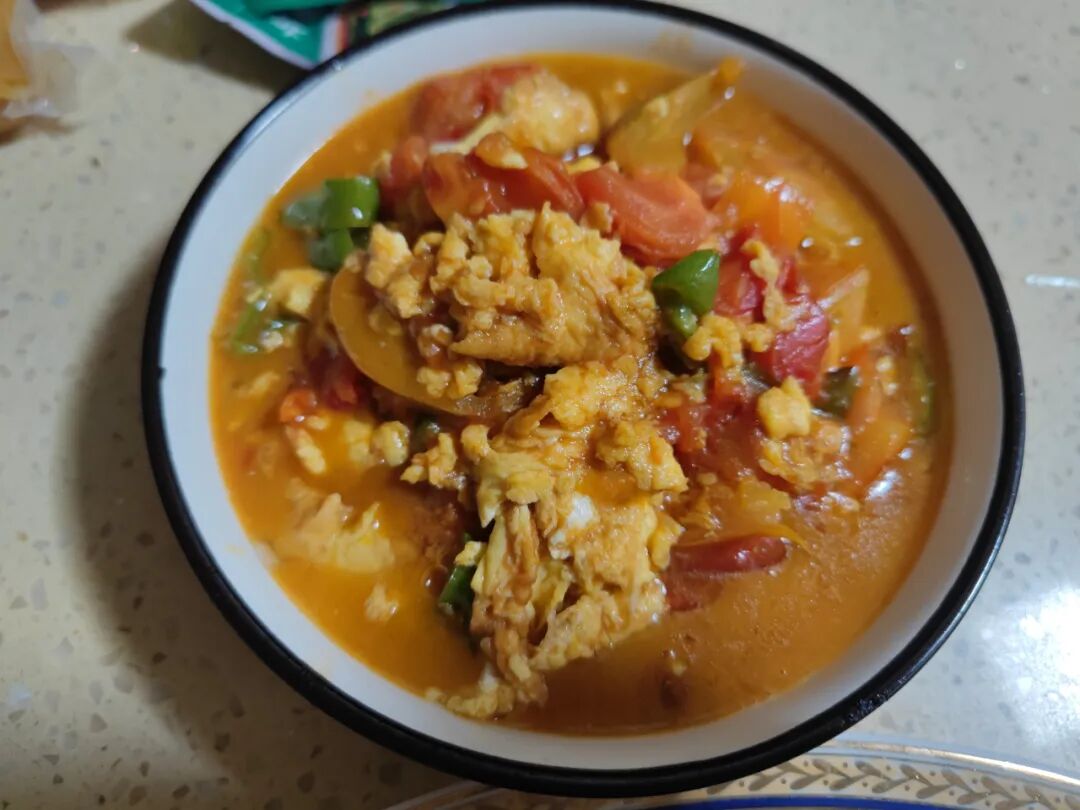 晚上饿了,炒了俩菜,超级好吃,吃了半锅米饭。