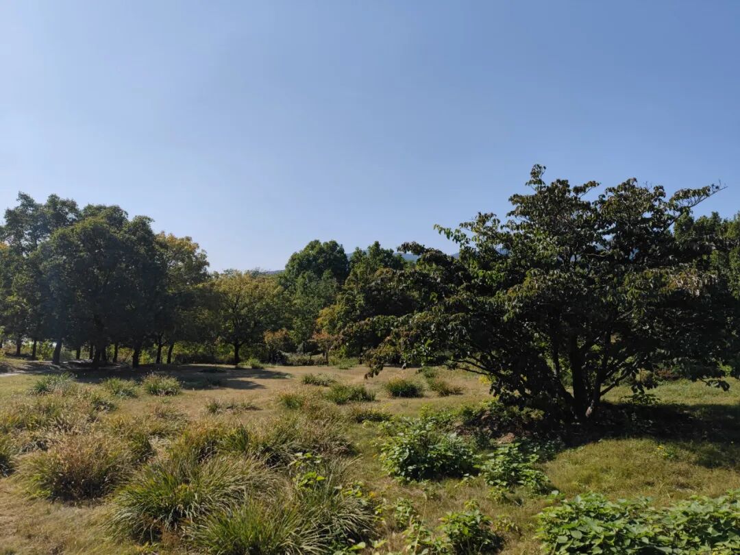 经过一片树林,已见初秋的景色。