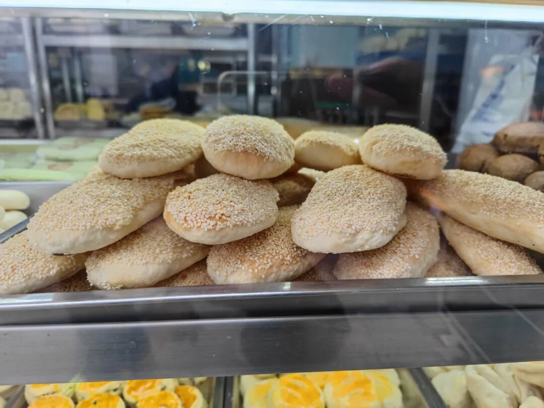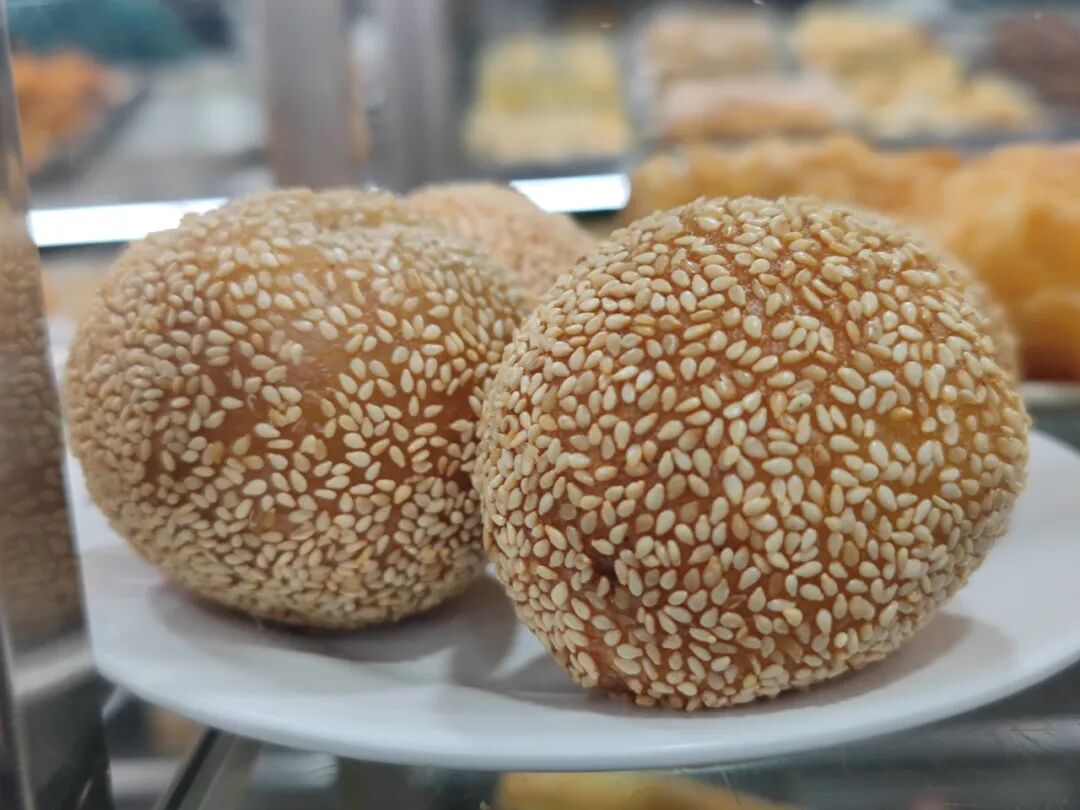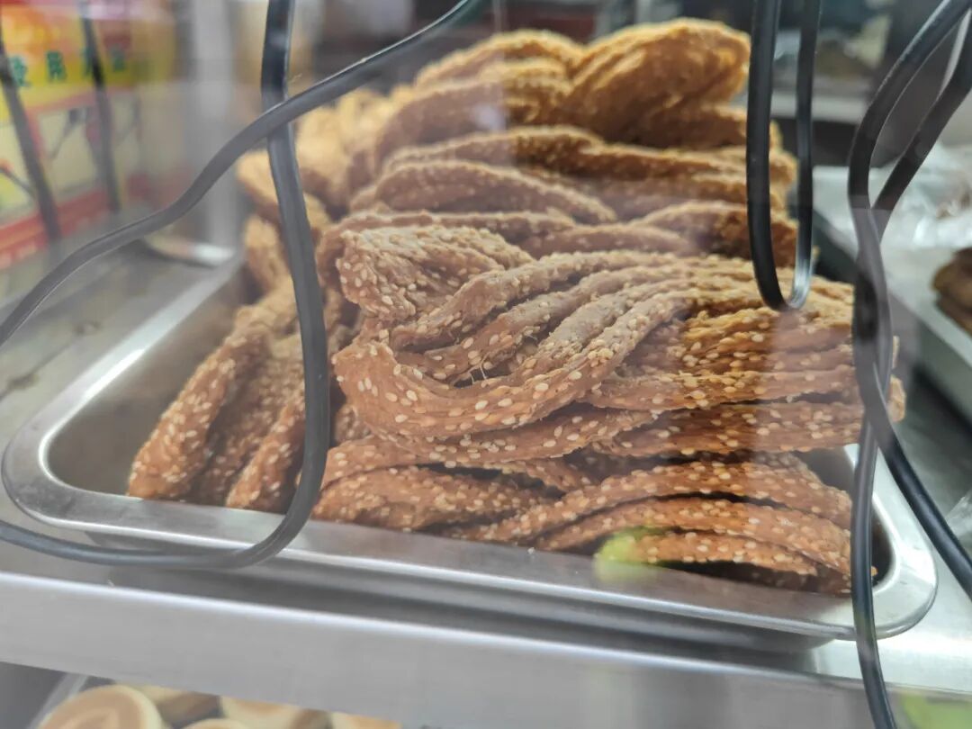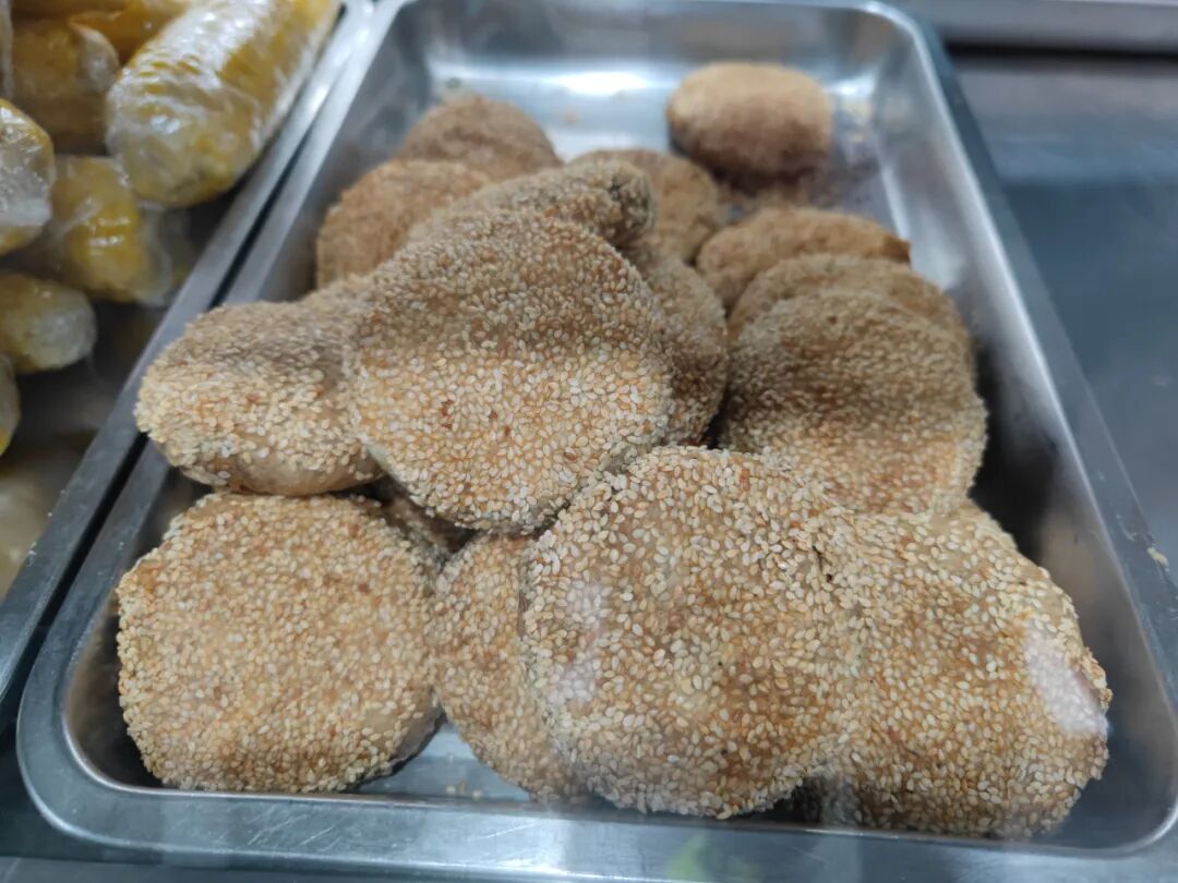 芝麻火烧,外面一层芝麻,里面是层层麻酱。