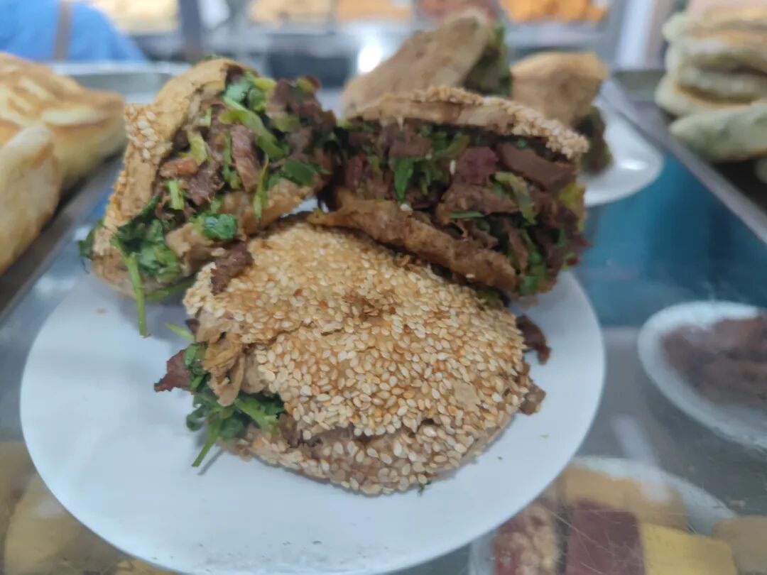 火烧夹牛肉,哈哈,芝麻火烧最主要的还是用来夹东西。