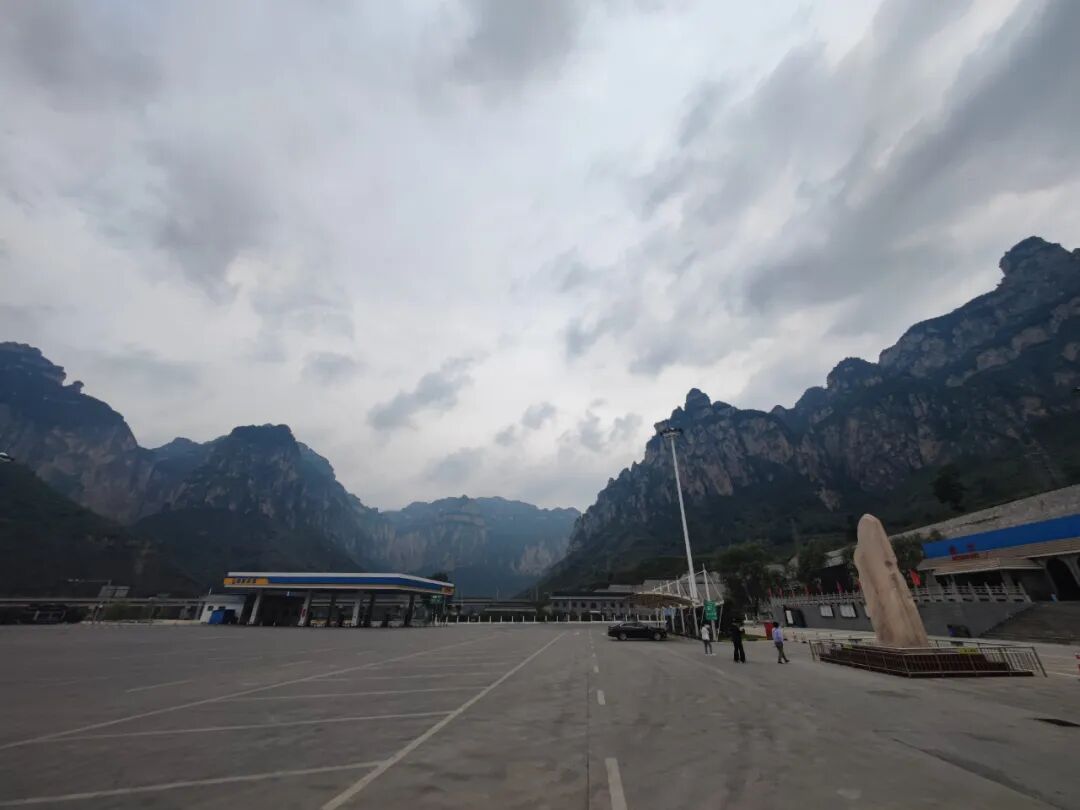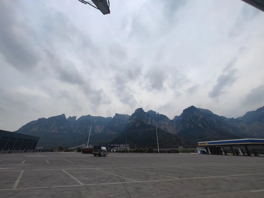 中途在一个服务区休息,这个服务区建在山洼之地。