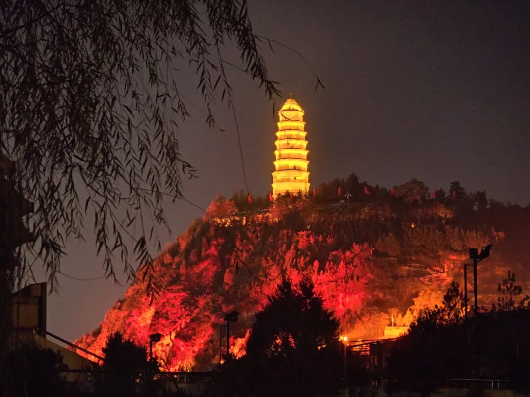 灯光下的宝塔山,这是延安的地标了。