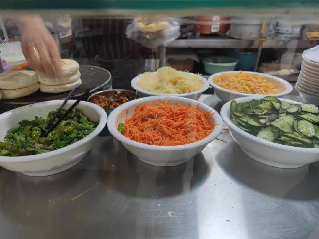 菜夹馍,馍里夹这些菜。