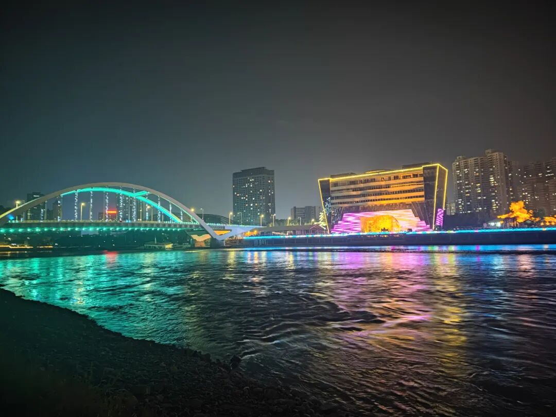 昨晚在黄河岸边走了走,变幻色彩的霓虹很漂亮。