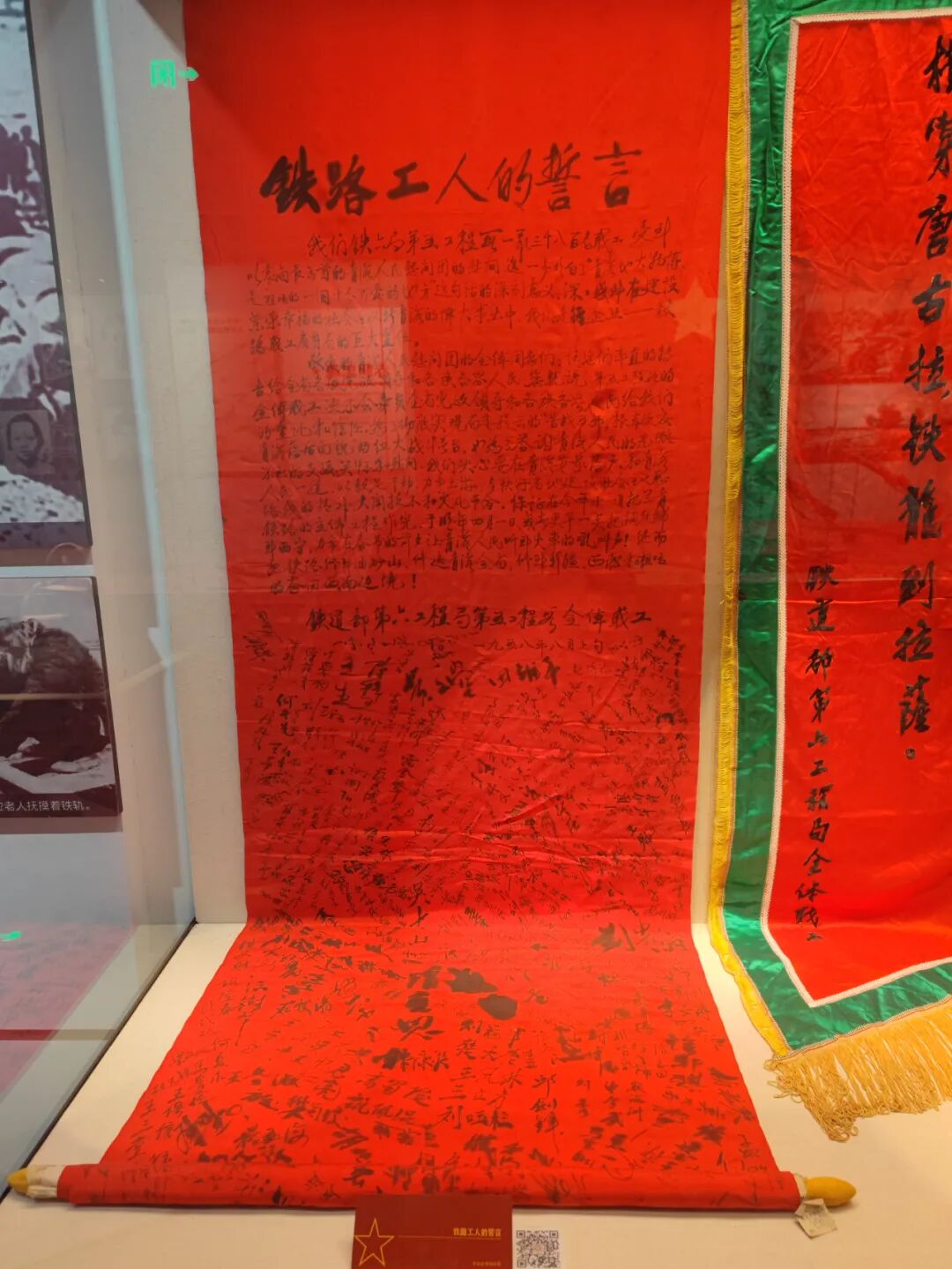 当年铁路工人的誓言书,下面的一个个签名,是一个个奉献青春、汗水乃至生命的人。