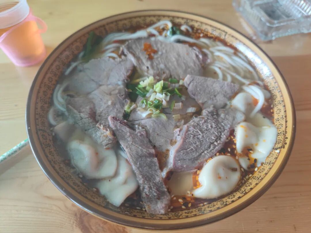 我照着旁边桌点了一模一样的“烩饺”,里面不是面条是粉条,饺子的肉丸馅儿我不太吃得惯,不知道是什么肉,确实没吃过,都吃完了。