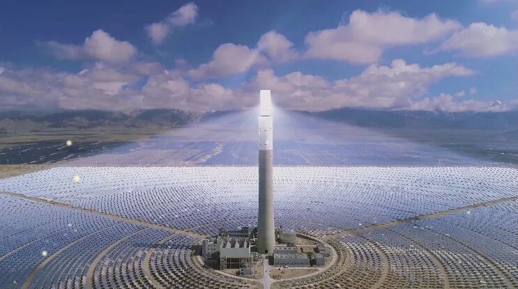一是这个发光的塔,小军师告诉我这是光电热厂,靠地面的弧面镜子反射阳光到中间塔顶部,加热水形成蒸汽推动发电机发电。