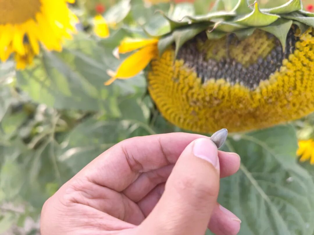 揪了一个向日葵的瓜子。