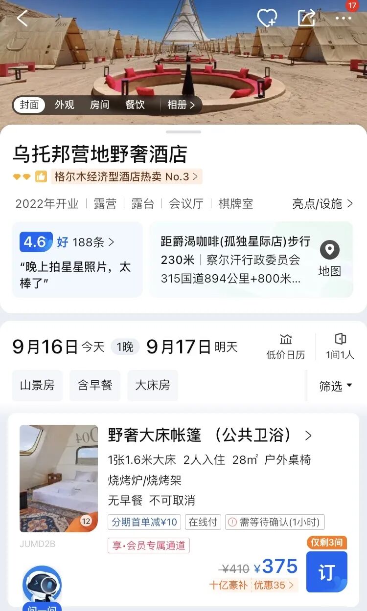 这是一个特别有感觉的酒店,建在戈壁上,人家这个才叫野奢。