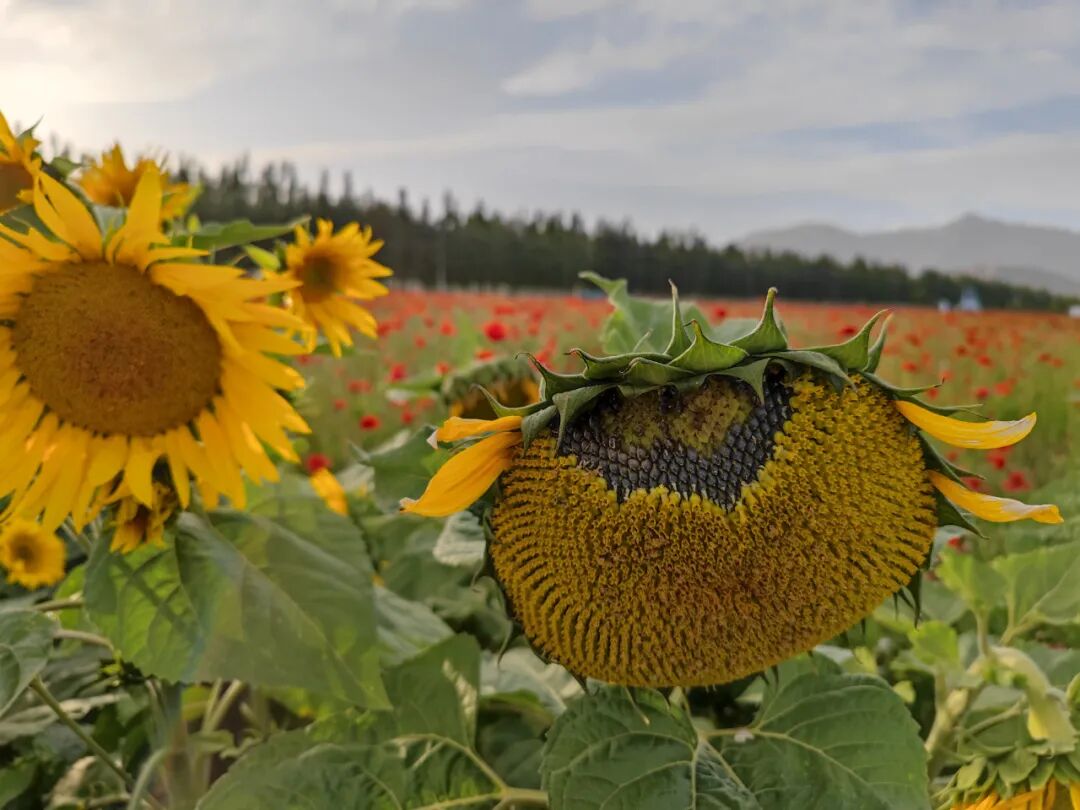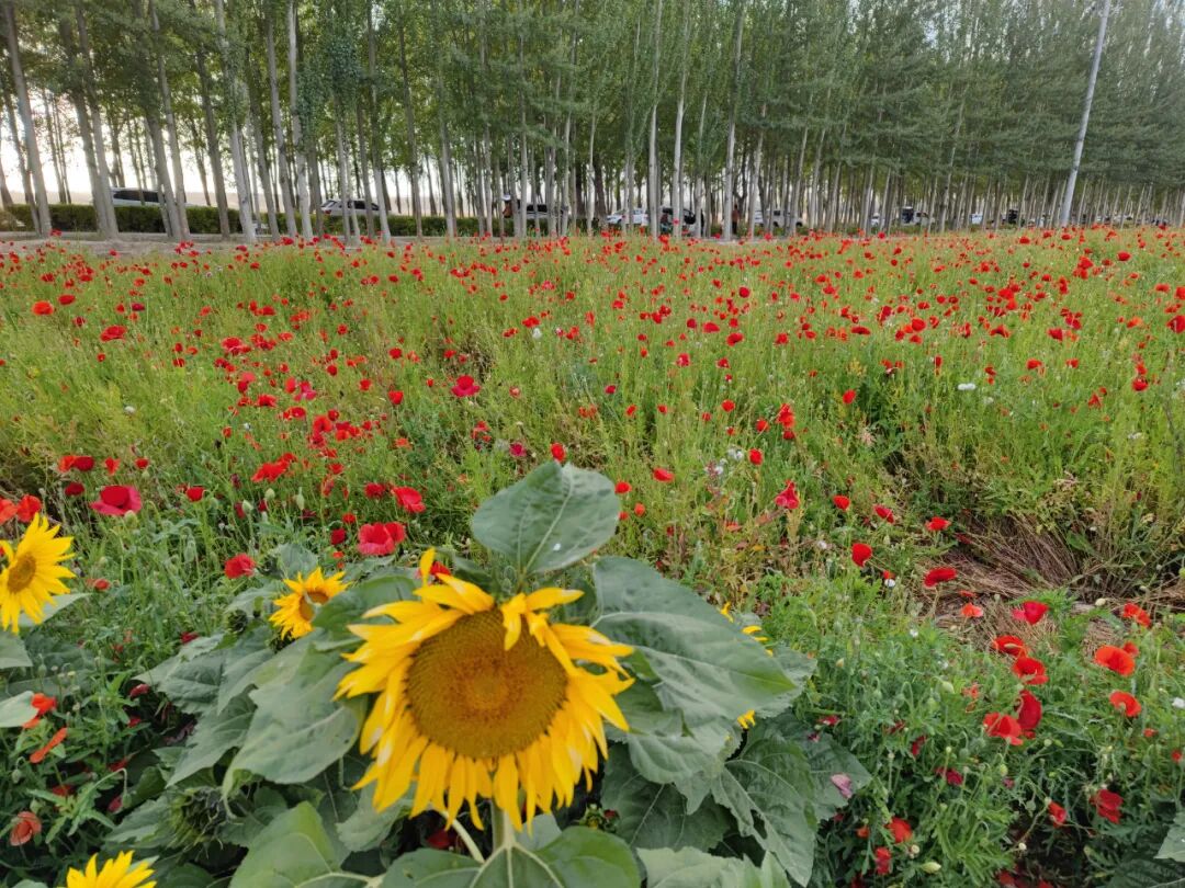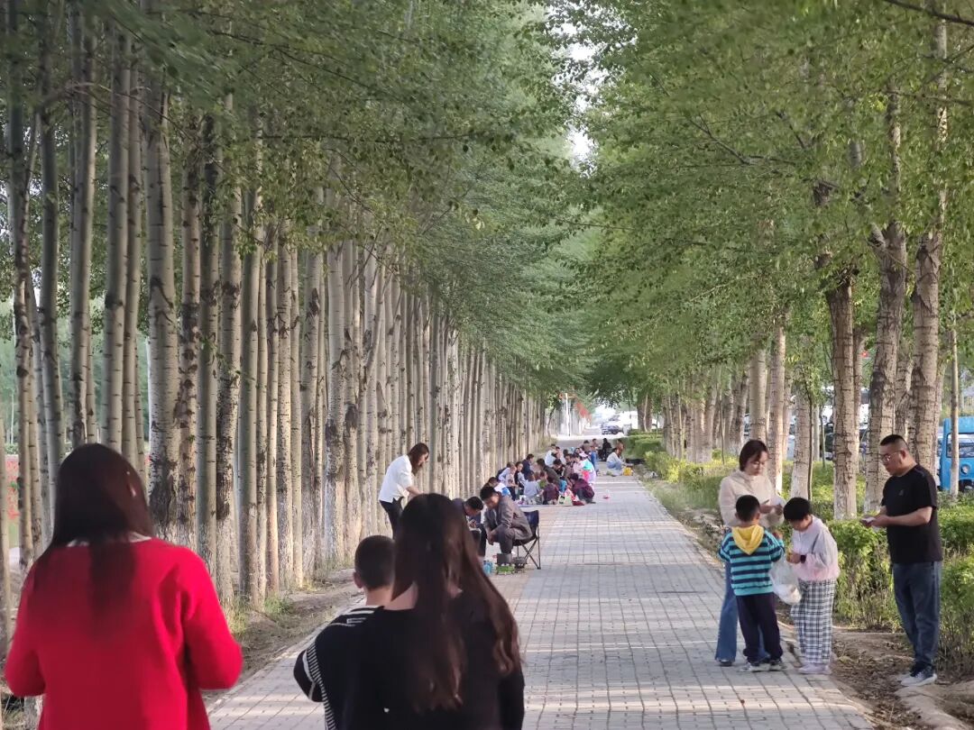 很多当地居民,在花海旁的林荫道上烧烤度周末,真幸福。