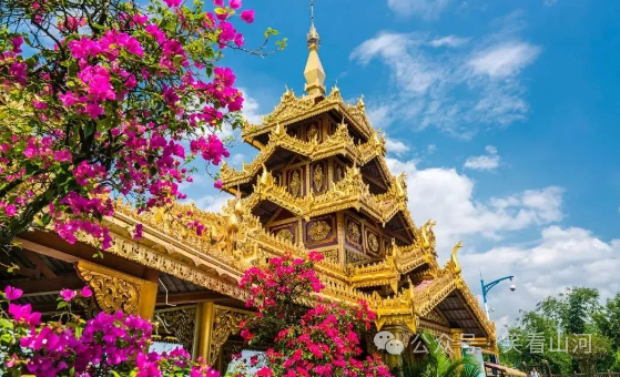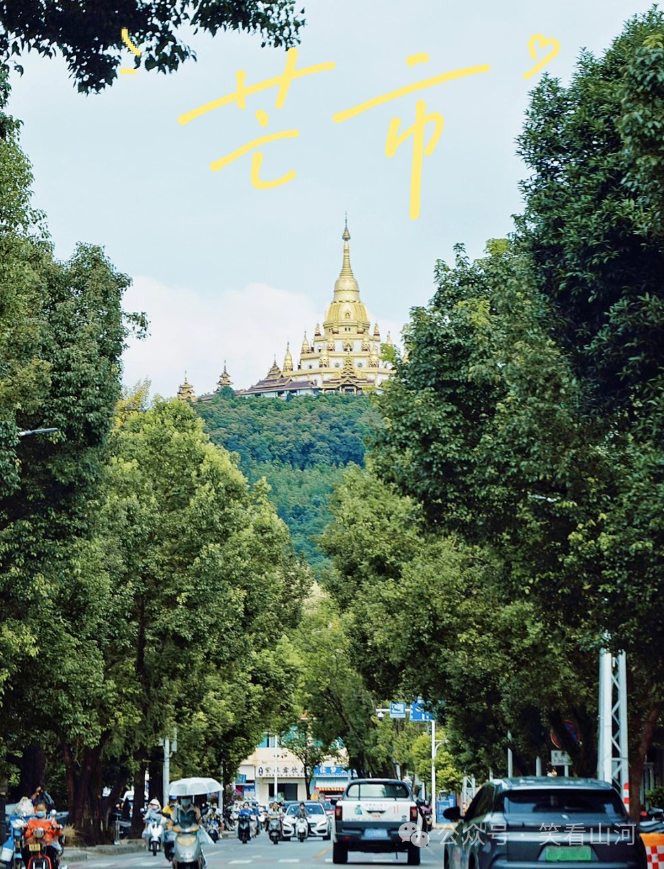 漫步芒市的街头巷尾,高大的棕榈芭蕉树在阳光下摇曳生姿,佛寺、金塔勾勒出一幅幅宗教与文化的画卷。