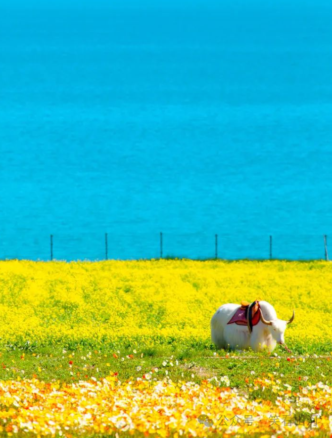 金黄的花海、雪山的皎洁、湖泊如翡翠一般的碧水,一眼就让人仿佛进入了一个梦幻般的仙境。