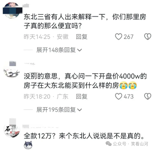 而本地老铁们也在评论区出来解释,房价并非真的如此便宜,避免外地游客涌入导致涨价。