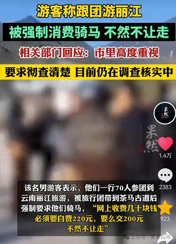 曾经有一支旅游团在丽江,竟然被强制消费骑马,哪怕游客不骑,也得掏200元。