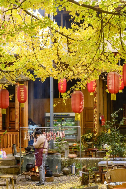 在11月中旬左右,整个村庄仿佛沐浴在一片金黄的海洋中,屋檐上、田野间、墙头边,到处都是一片明媚的景色,在这个季节,你可以漫步在铺满银杏叶的小巷,品尝银杏炖鸡、银杏花鸡蛋、银杏炖小肠,细细品味秋冬的韵味。