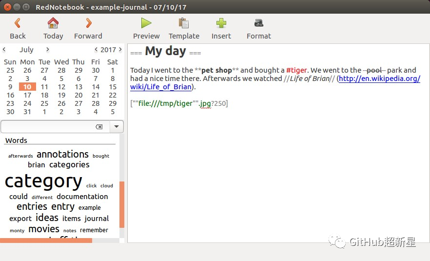 RedNotebook是一款开源跨平台(Windows, Linux, MacOS)的日记和笔记管理软件,它提供了一个直观的界面和丰富的功能,使用户能够轻松地记录和组织各种信息。无论是个人日记、工作笔记还是灵感记录,RedNotebook都能满足你的需求。