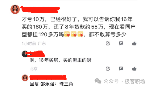 也有网友说:才亏10万,已经很好了。我可以告诉你我16年买的160万,还了8年贷款约55万,现在看同户型都挂120多万吗陵隆隆,都不敢算亏多少