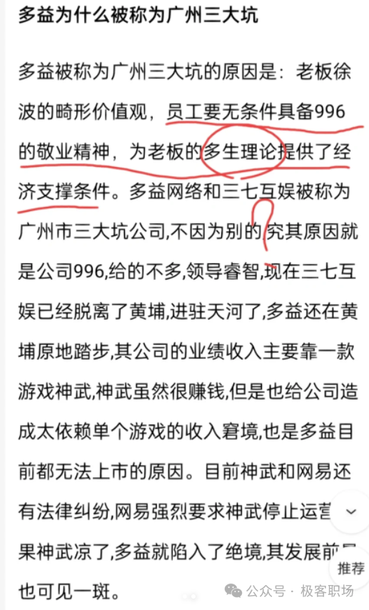 一位网友提出了关于广州多益网络的指控。他称,在年终奖发放的时期,公司强迫员工以“自愿”的名义离职,结果是这些员工既没有获得赔偿,也没有得到年终奖。网友指出,公司在劳动合同中设置了许多陷阱,这些陷阱显然是为了防止员工进行劳动仲裁。网友声明,他分享这些信息的目的仅仅是为了陈述事实,并帮助其他人避免类似的困境。