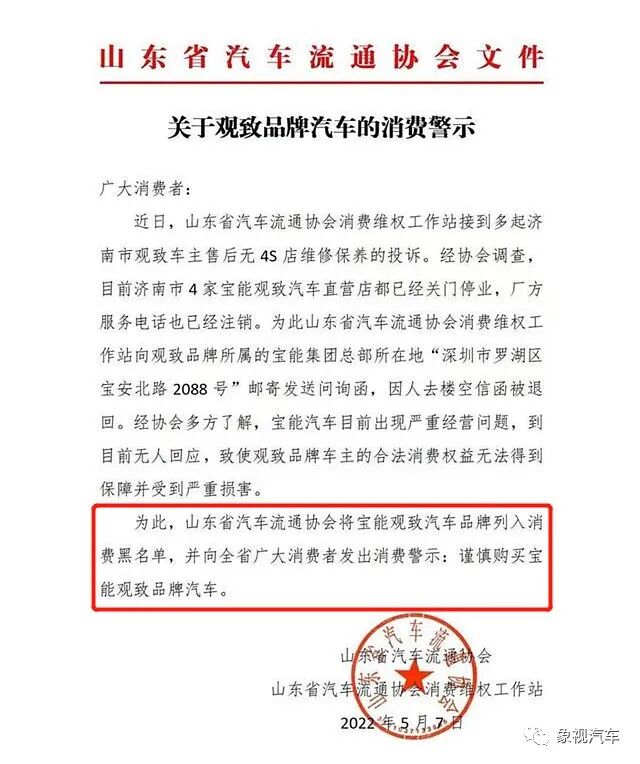 去年年中,宝能系暴雷,资金链风雨飘摇,这给宝能汽车蒙上了厚厚的阴霾。今年3月份,因为7亿元的债务问题,广州中院公示姚振华“下落不明”,引发市场无限猜测。近日观致汽车又上了黑名单,被山东汽车流通协会警示:谨慎购买宝能观致品牌汽车。警示信还爆出宝能集团总部“人去楼空”。
