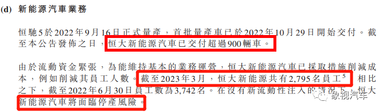 此外,一年来,恒大汽车员工减少了约1000人,目前只剩2795人。种种迹象表明,恒大汽车危在旦夕,徘徊在破产倒闭边缘。