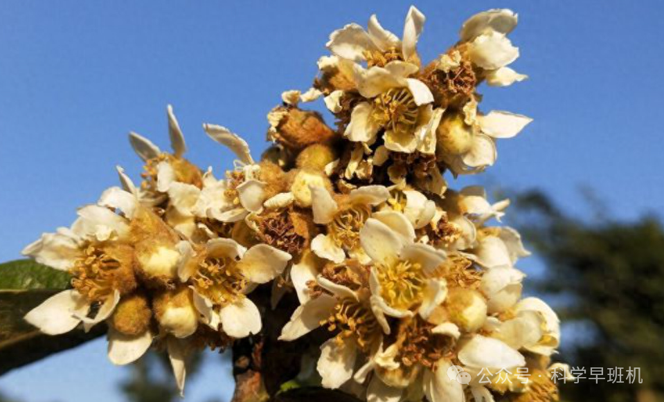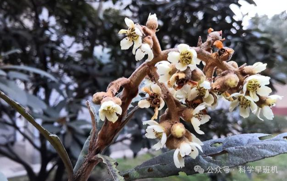 枇杷花能够忍耐零下10℃的低温,昆虫和鸟类也在这时候帮助它完成传粉受精的“伟业”。它的花期可以从次年10月到来年2月,也是冬季里为数不多的一抹亮丽的色彩。